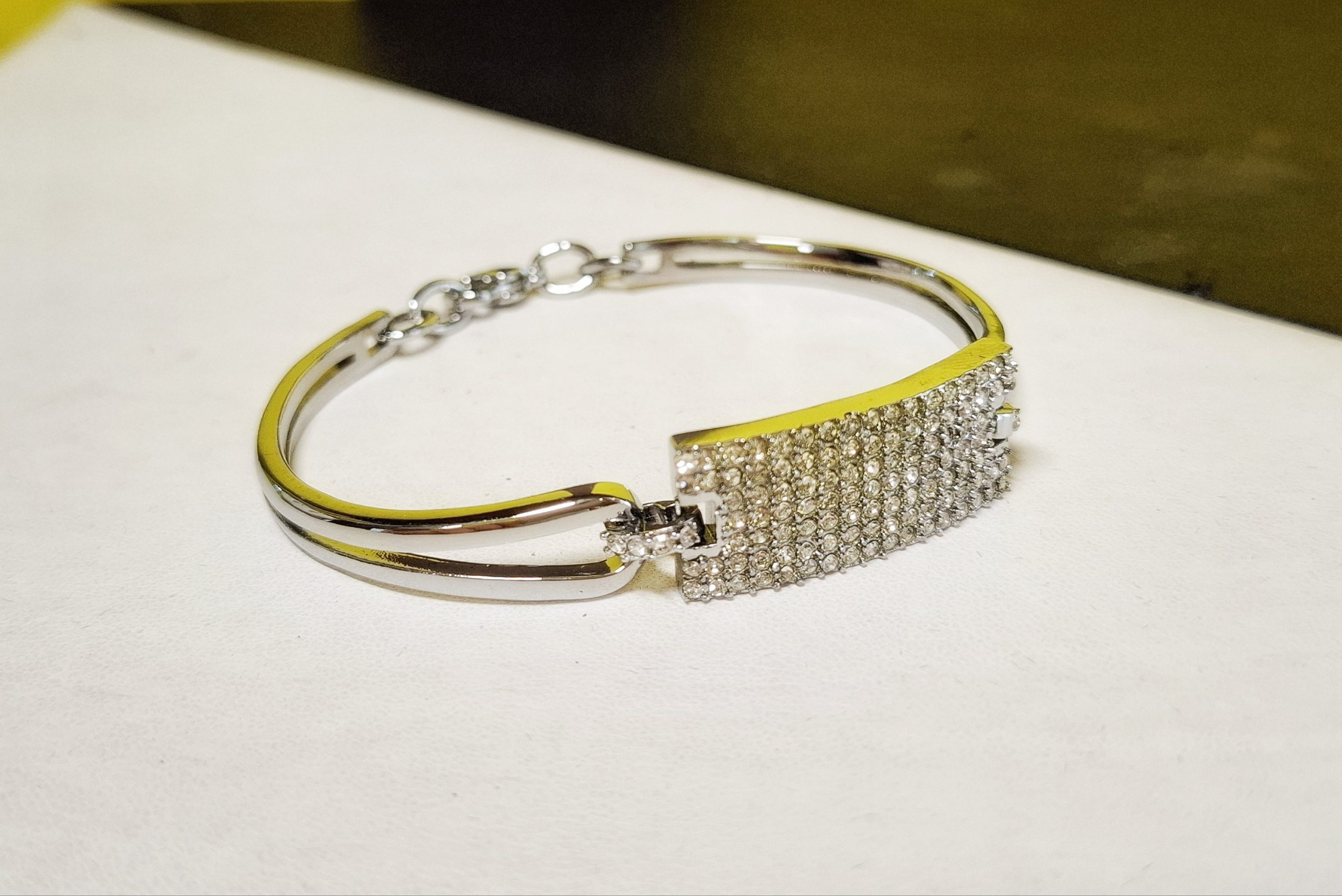 Bracciale in acciaio semirigido con parte centrale pavettato in zirconi.