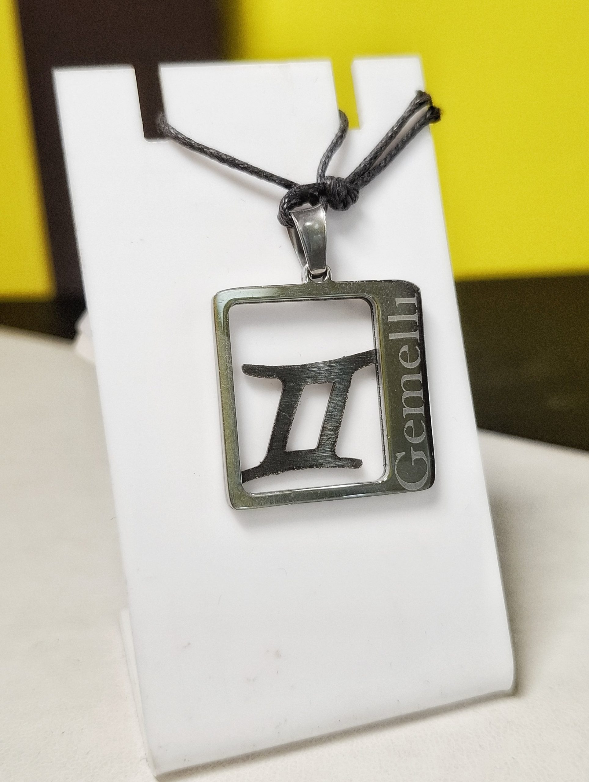 Ciondolo in acciaio con segno zodiacale. Unisex.
