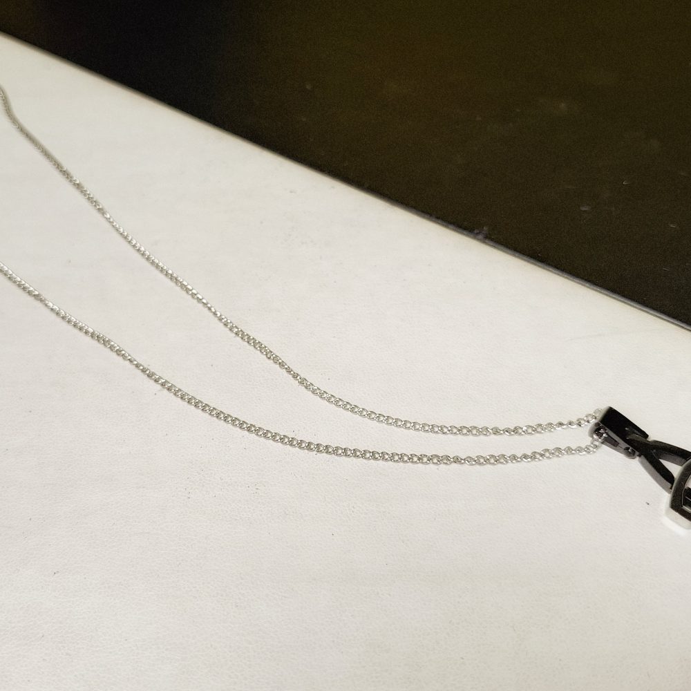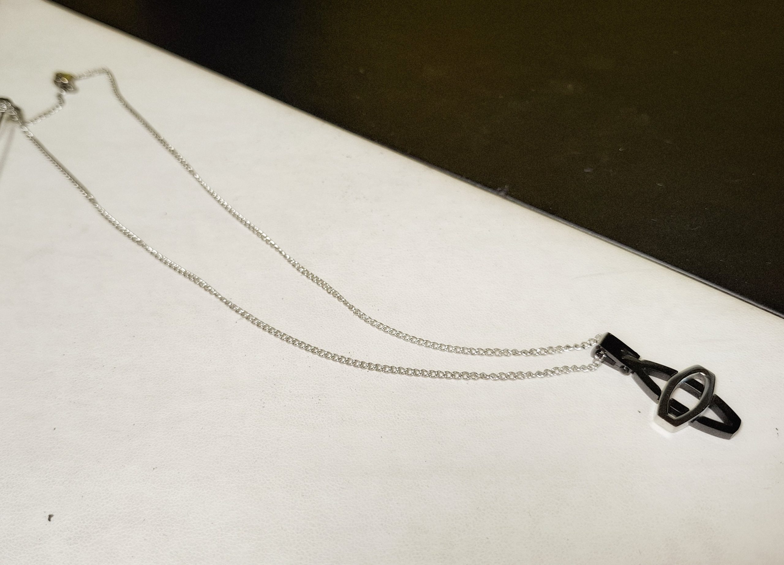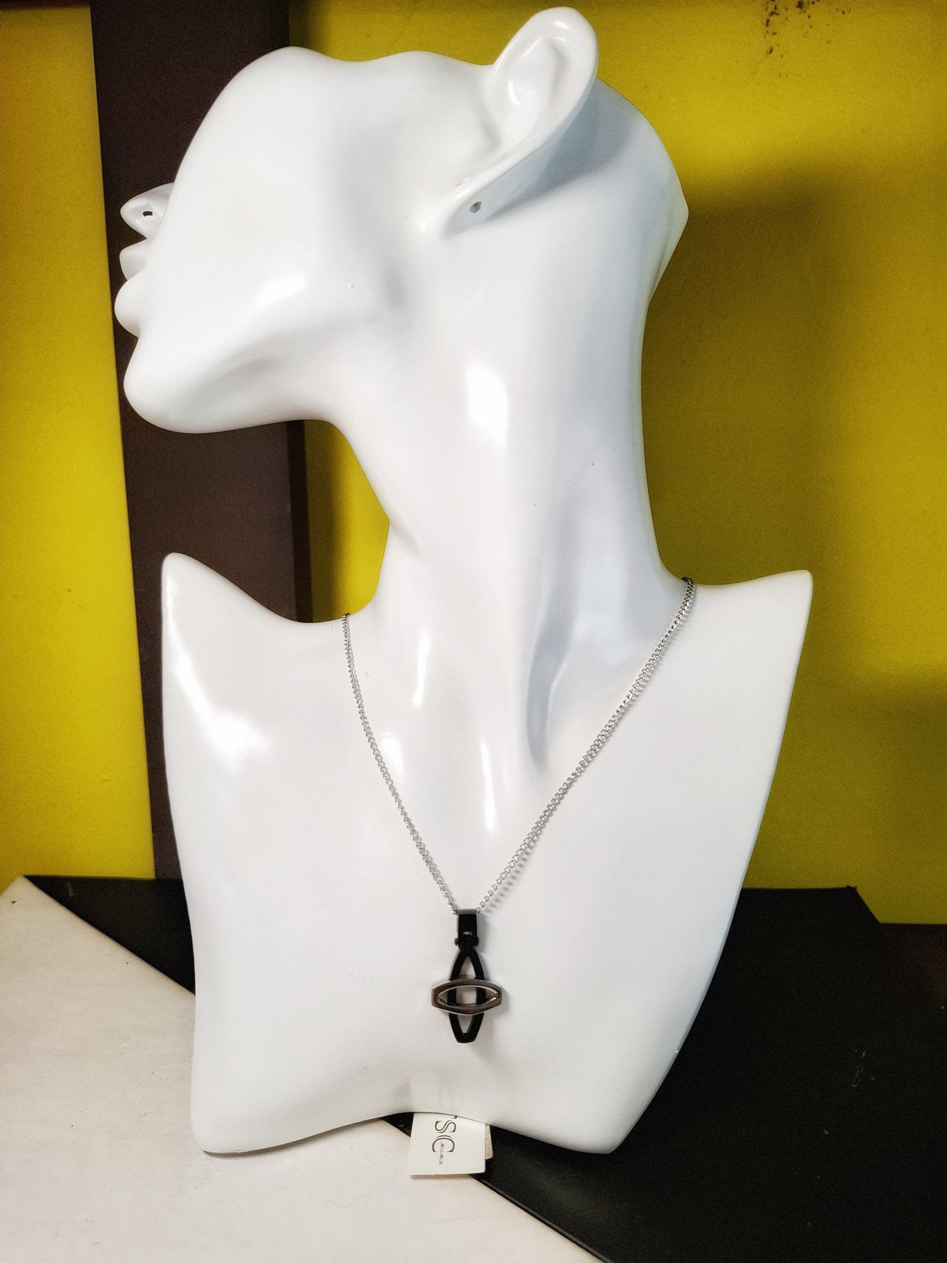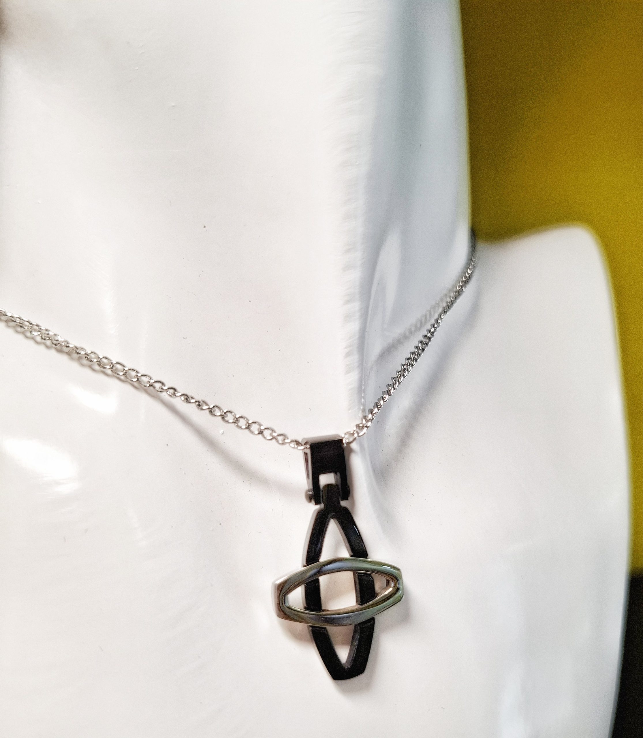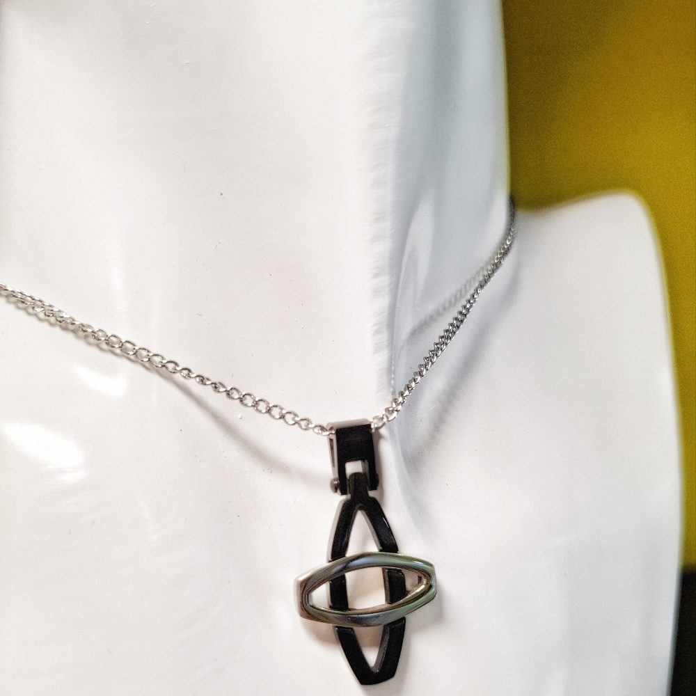 Collana uomo in acciaio bicolore bianco/nero, con crocifisso.