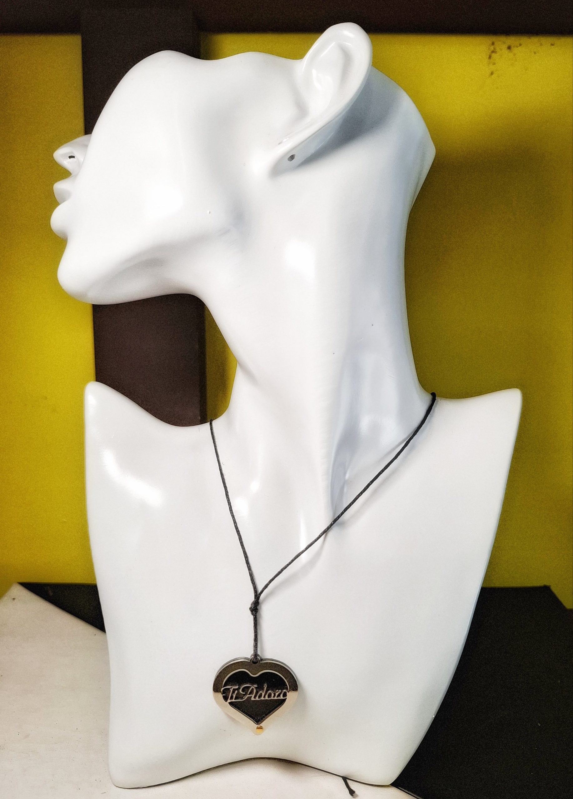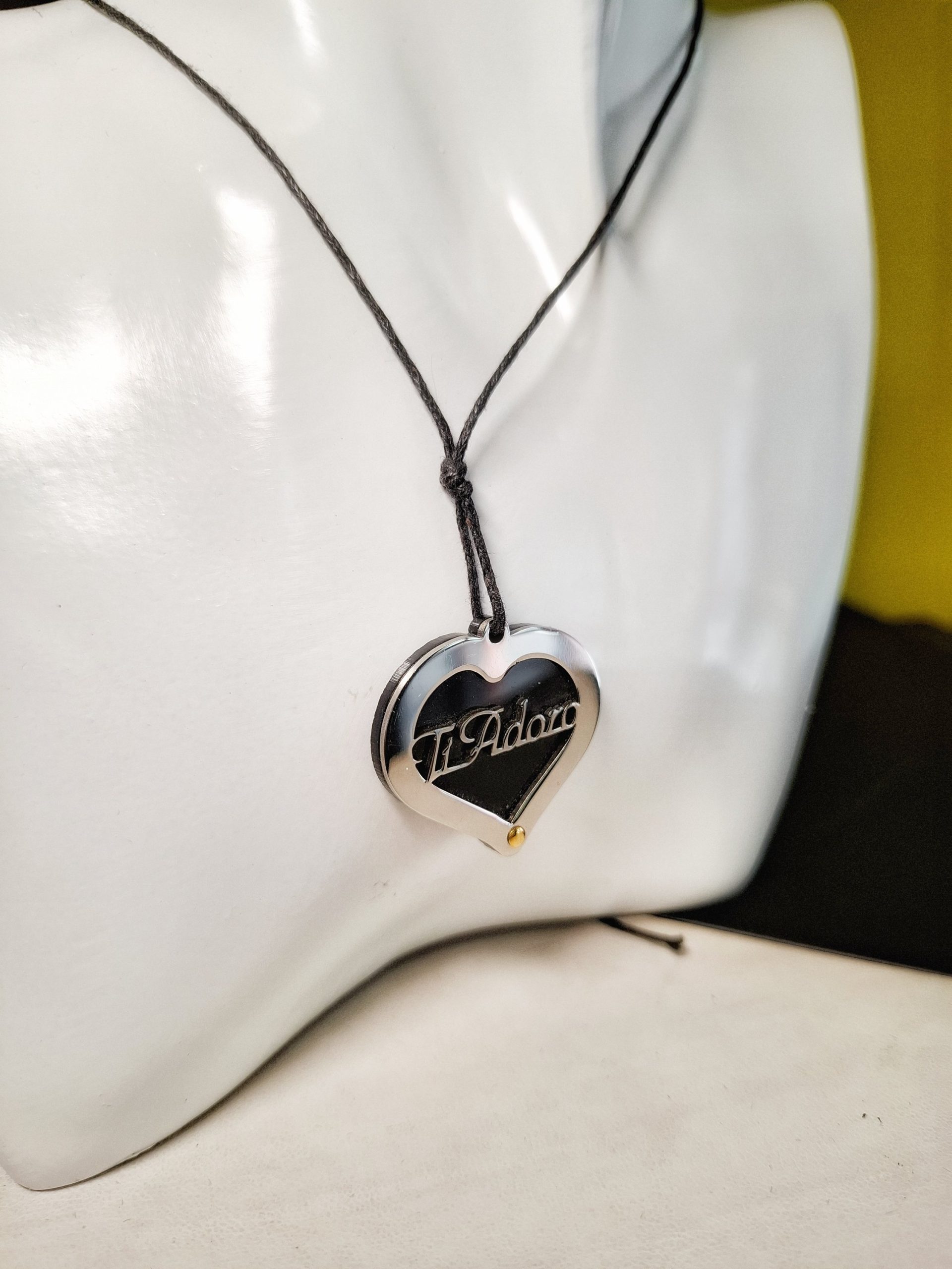 Collana uomo acciaio con inserto in oro. Cordino regolabile con nodi.