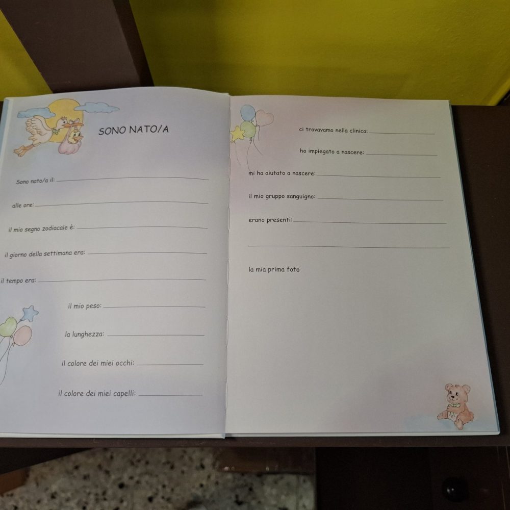 Diario nascita da compilare con i primi dati dei vostri piccoli. Un ricordo impreziosito dal simpatico angioletto in argento 925/1000 zaponato che non diventerà mai nero.