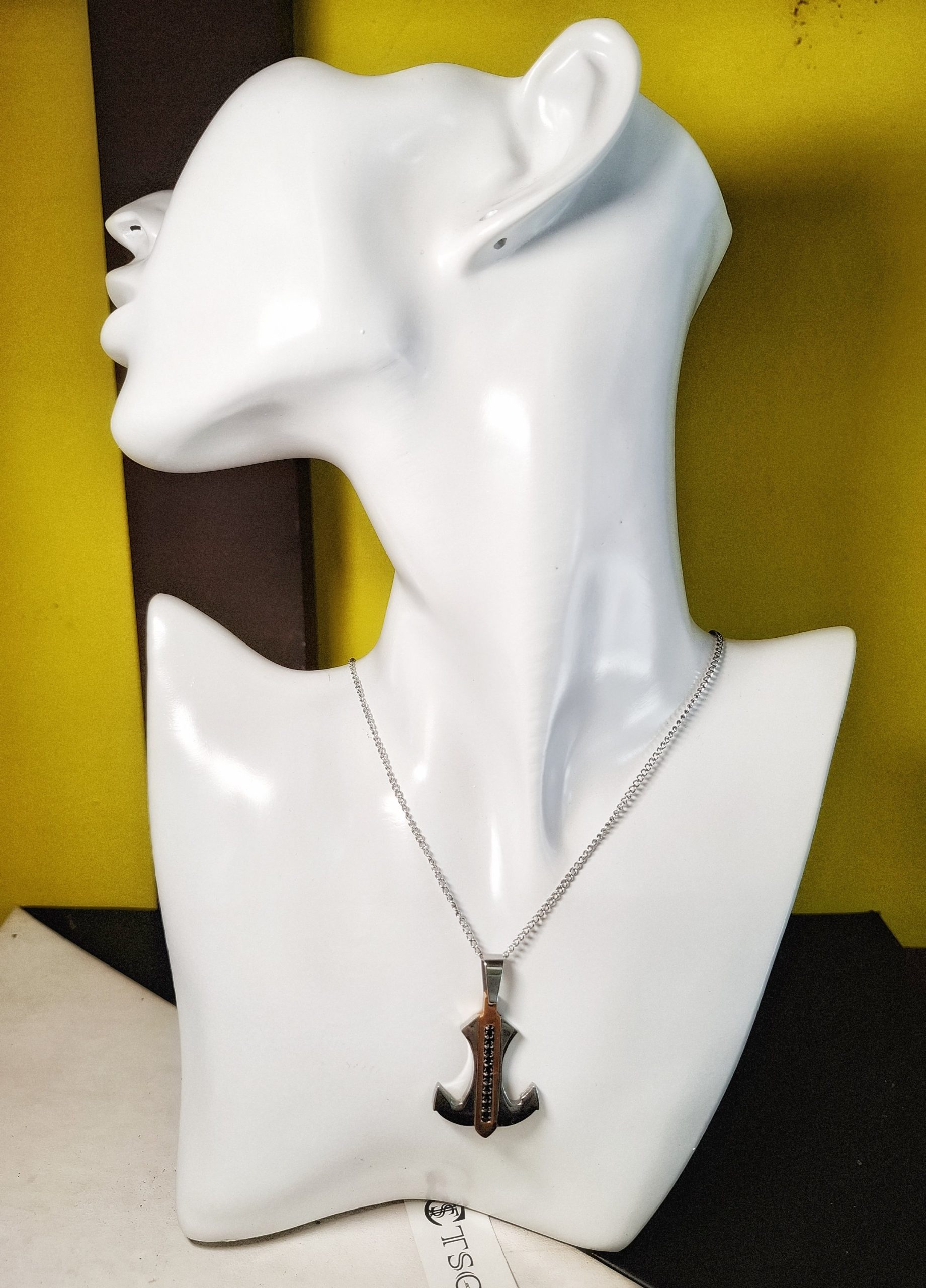 Girocollo uomo con catena maglia rolò e ciondolo bicolore bianco/rosso impreziosito dal zirconi neri.