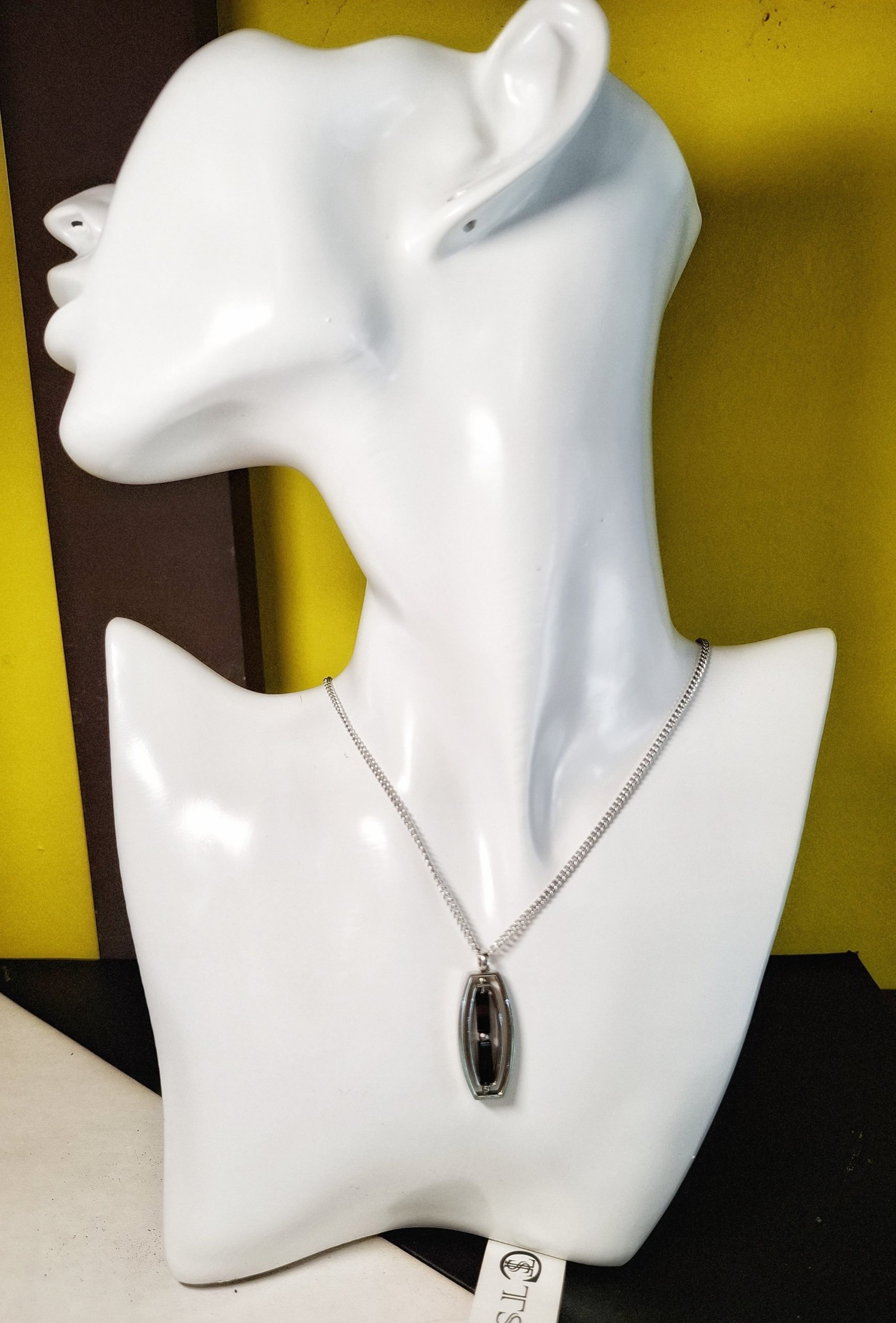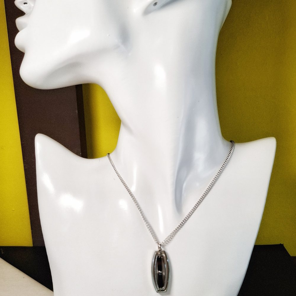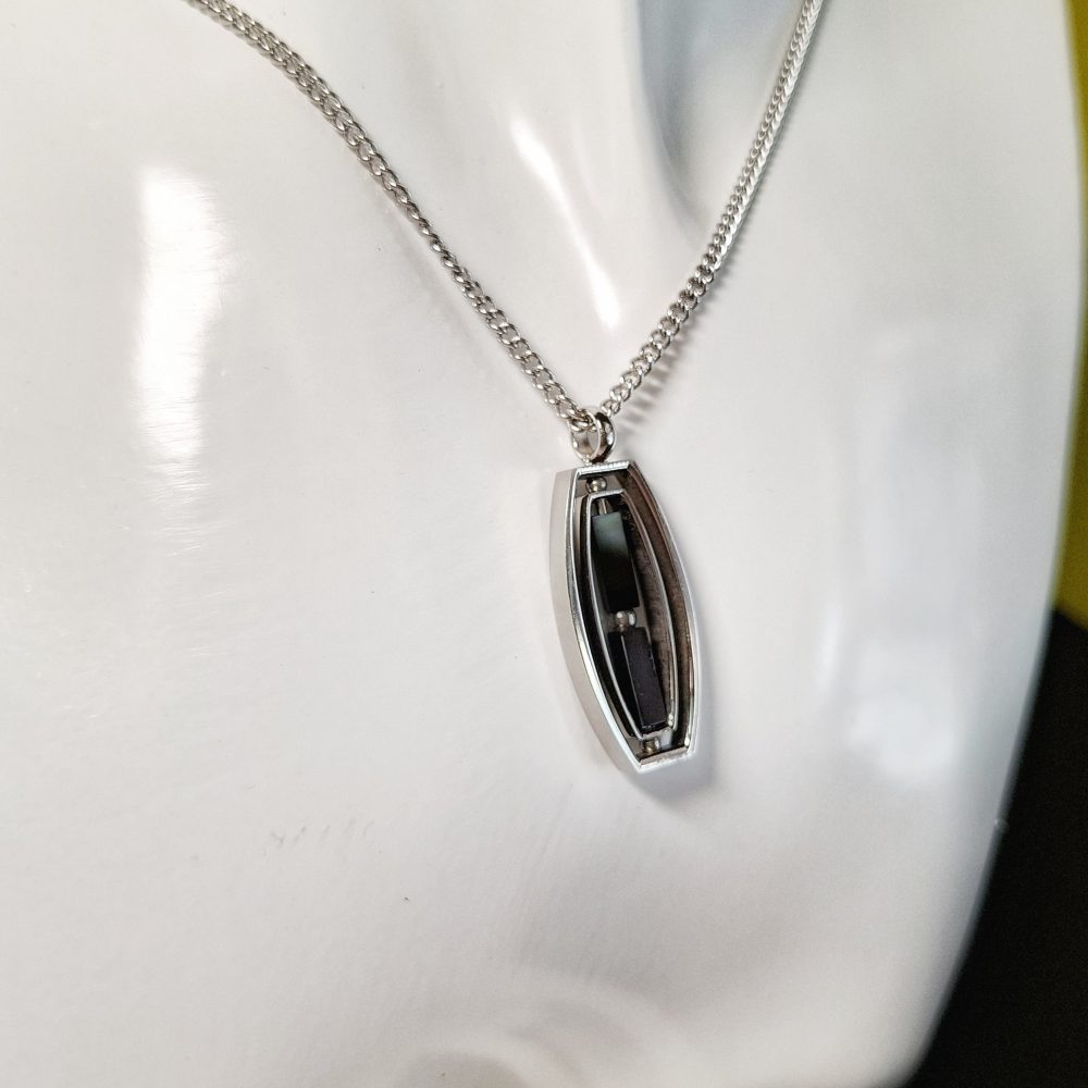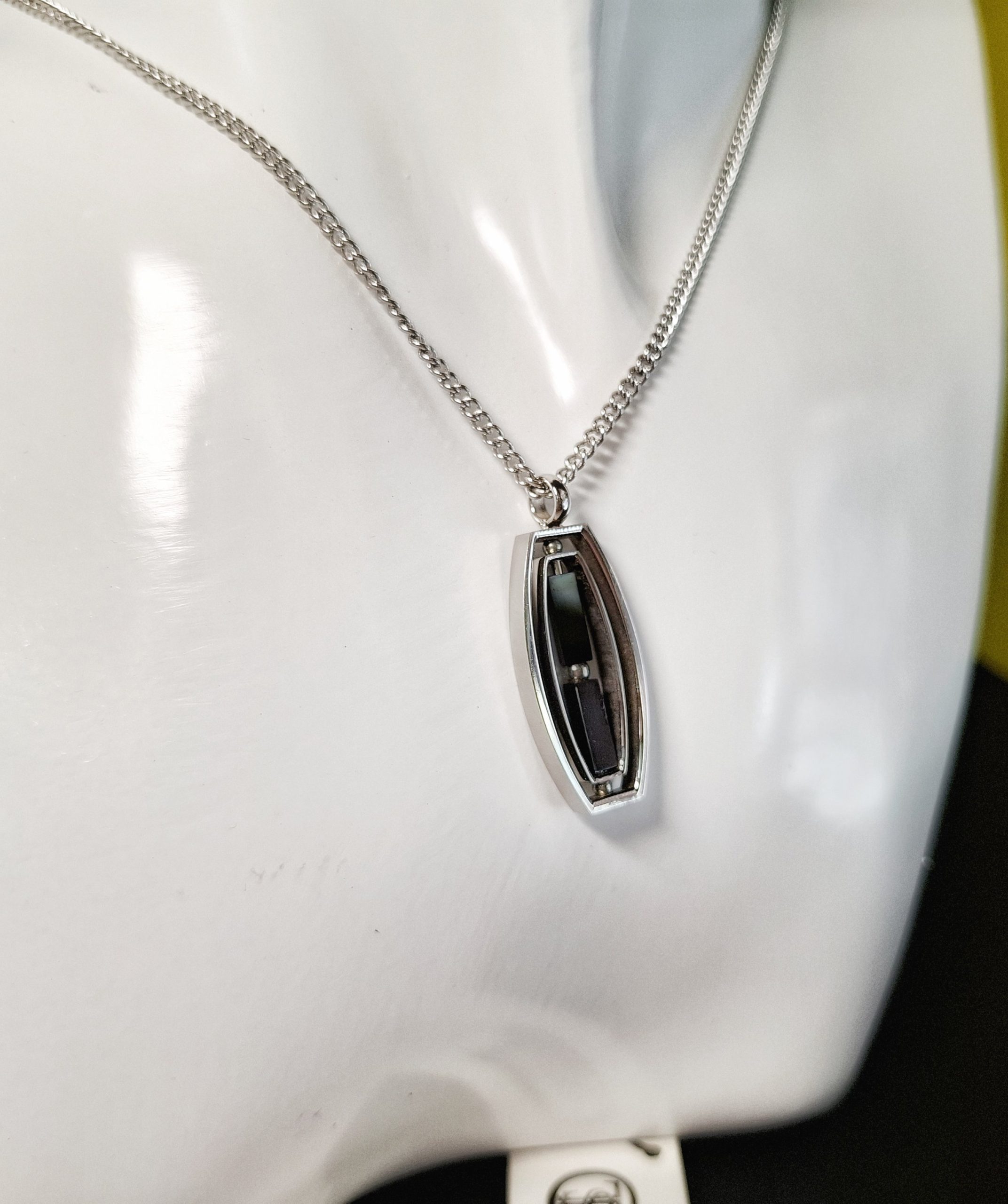 Girocollo uomo in acciaio con ciondolo bicolore bianco/nero. Catena grumetta.